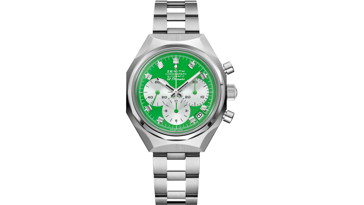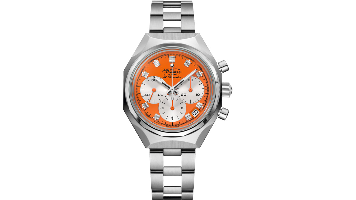 特徴:エル・プリメロ3針ウォッチ。高振動クロノグラフ。シリコン製のアンクルとガンギ車。ねじ込み式リューズ。