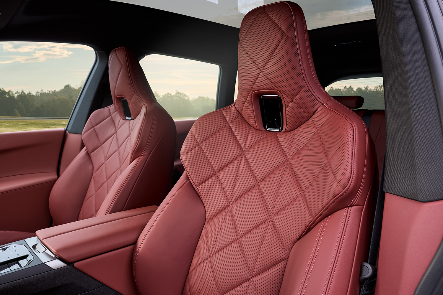 インテリア・デザインは、Mスポーツ・インテリアおよびシート・マテリアル、新設計のMマルチファンクション・シートは、ヴェガンザと上質なマイクロ・ファイバー素材を用いサイド・サポートの強化によりホールド感を向上させ、iXの未来的なキャビン・デザインに新たなスポーティな要素を加えている。
