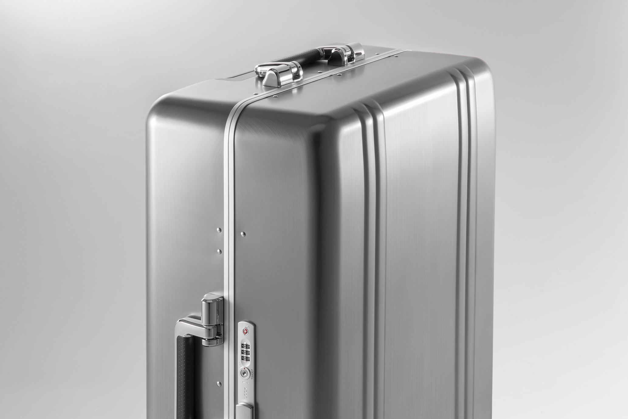 ボディ表面に金属蒸着加工を施し、美しいメタリックな質感を実現。アルミニウムフレームによりスムーズに開閉が可能となった。ポリカーボネート製ボディは優れた衝撃強度を発揮し、大切な荷物をしっかりと保護する。