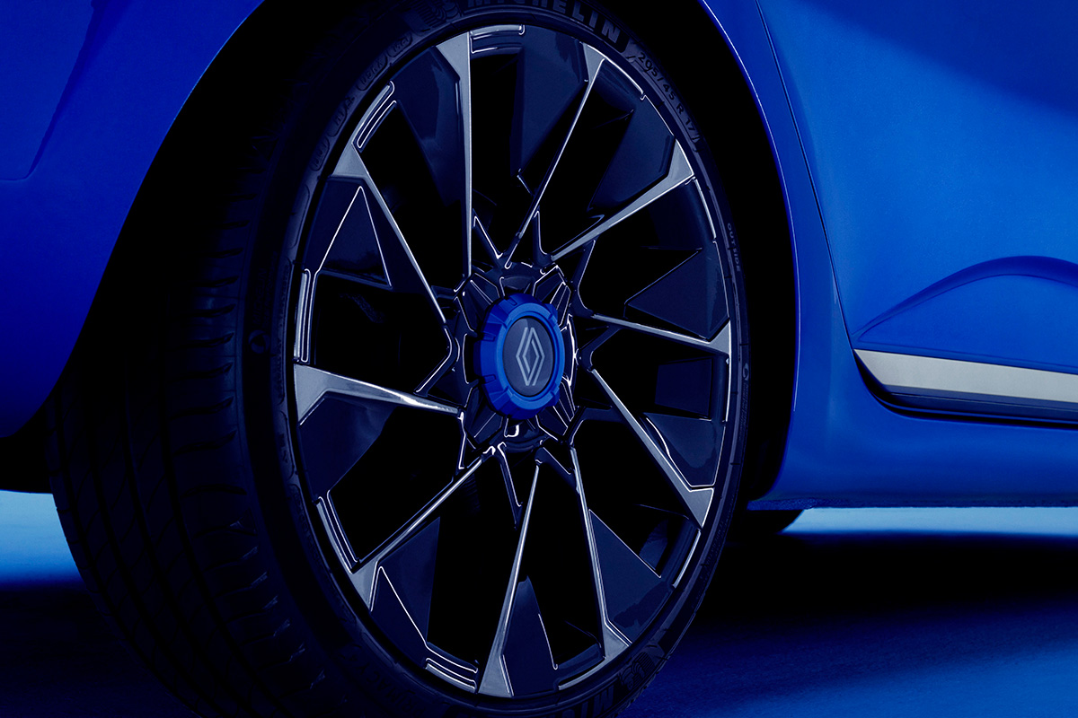 新型ルーテシアに、スポーツシックで上質なエスプリ アルピーヌグレードが設定された。そのフロントフェンダーには、アルピーヌのエンブレムが取り付けられ、スポーティでエレガントなデザインの専用アロイホイールは17インチとなる。