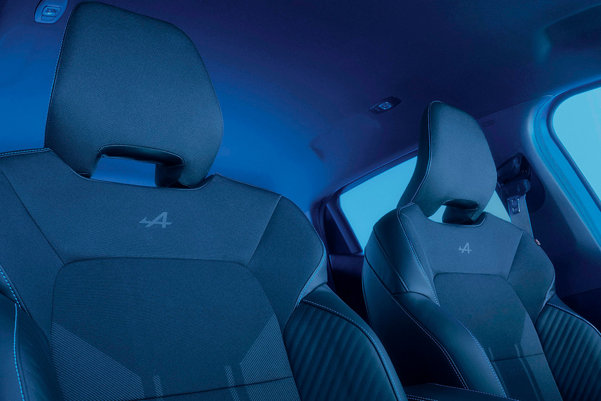 さらに新しくなったシートは、サポート性に優れた形状で、バイオスキン×ファブリックのコンビ素材を採用し(前席シートヒーター付)、快適に長距離ドライブが楽しめる。なおシートバックには、アルピーヌのロゴが入っている。加えてアルミペダル、ステアリングヒーター付TEPレザーステアリングホイール、アルピーヌロゴ入りキッキングプレートも、アルピーヌの世界観を表現している。