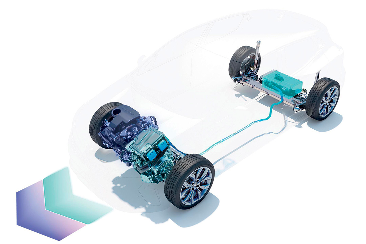 そして電子制御ドッグクラッチ マルチモードATは、モータースポーツで使用されるドッグクラッチを採用することで、一般的なクラッチやシンクロナイザーを省き、軽量化とコンパクト化を図ったギアボックスとなる。モーター側に2つ、エンジン側に4つのギアを持ち、これらのギアを組み合わせた12通りの変速比でモーター、エンジンそれぞれから動力を切れ目なく、効率よく引き出すことができる。また発進時はエンジンを使用せずに、低速域で効率の高いモーターのみで駆動する。このため、すぐに力強いトルクを得ることができ、スムーズでレスポンスのよい発進と素早く爽快な加速が可能。加えて中速域では、モーターとエンジンを最適に組み合わせることで、素早いレスポンスと息の長い加速が得られる。