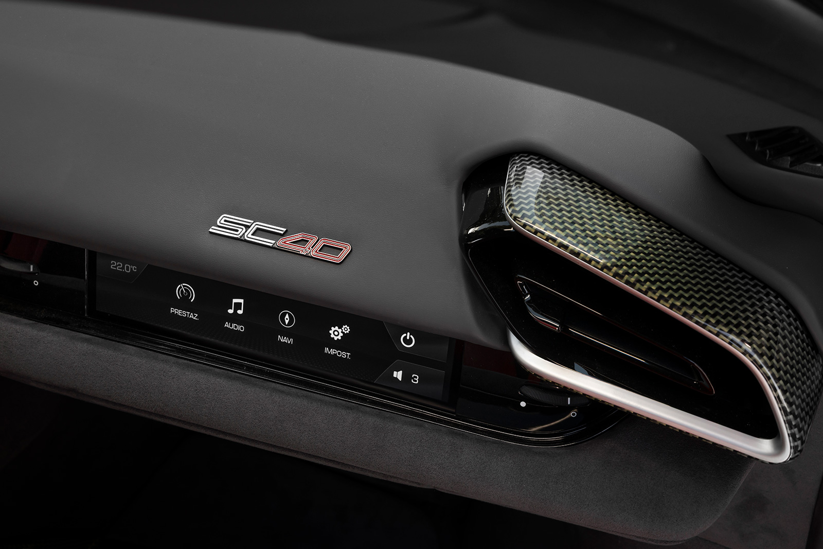 このモデル名のSC40は、1987年7月に発表された伝説的なスーパーカー、F40へのオマージュとなる。SC40は、F40を想起させるシャープで角ばったラインを持ちながらも、柔らかな面のつながりを巧みに融合し、現代的でありながらも独自性の強いスタイリングを実現している。そしてSC40は、完全に新しい唯一無二のデザインを採用。サイドウイングに刻まれた浮き彫りのSC40ロゴは、往年の名車への明確な敬意を示すものだが、単なる再解釈ではなく、独自の個性を持つモデルとして仕上げられている。