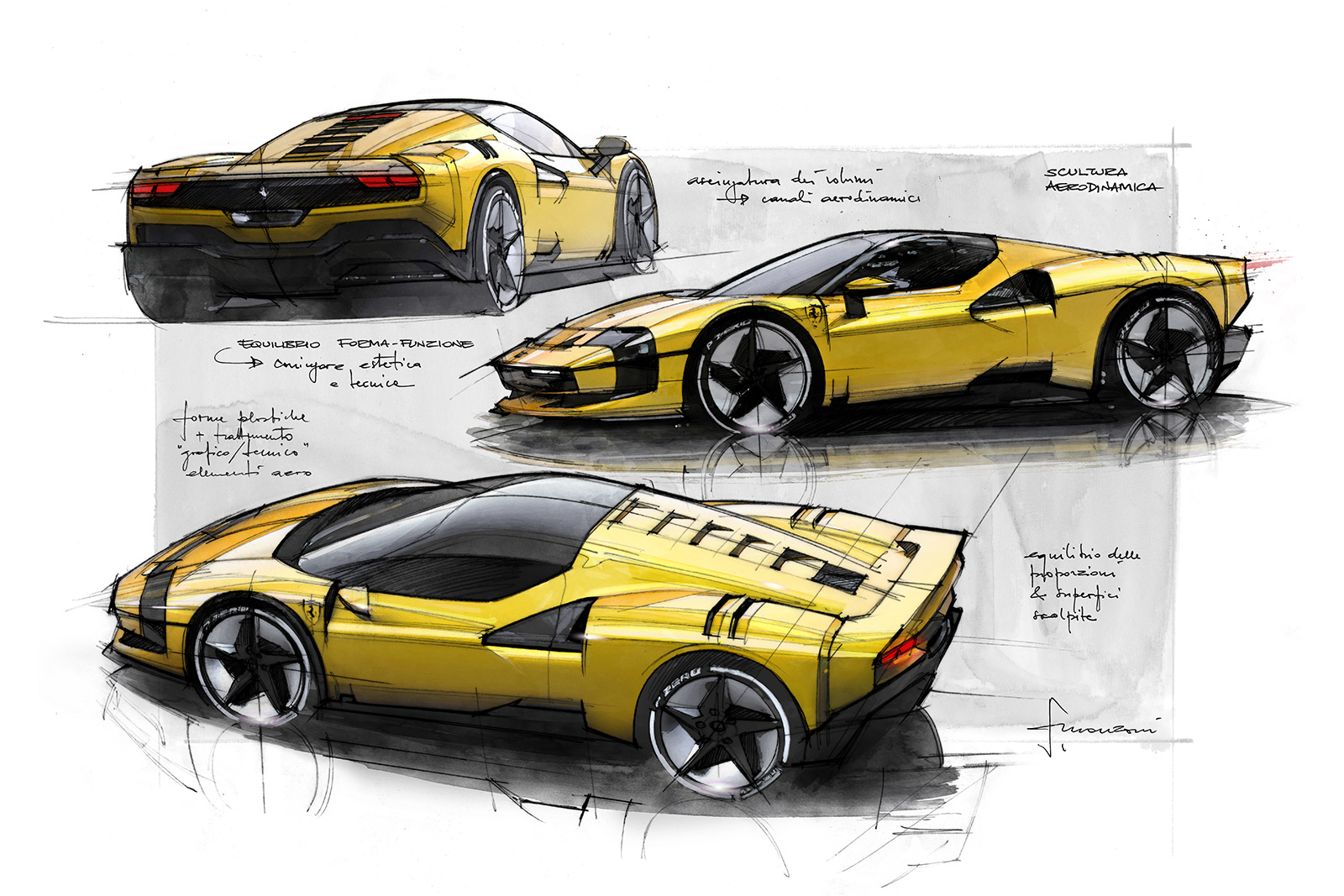 各プロジェクトは、顧客からのアイデアをきっかけに、フェラーリ・スタイリング・センターのデザインチームと密接に連携しながら開発される。車両のプロボーションやフォルムが決定されると、詳細なデザイン設計図やスタイリング・バック(実寸デザインモデル)が作成され、その後にワンオフモデルの製造工程が始まる。全プロセスは平均で約2年を要し、その間、顧客はテザインや検証段階に密接に関わる。こうして完成するのは、跳ね馬のロゴを冠し、マラネッロのすべての車が持つ卓越した品質基準に則って設計された、世界にひとつだけのフェラーリとなる。