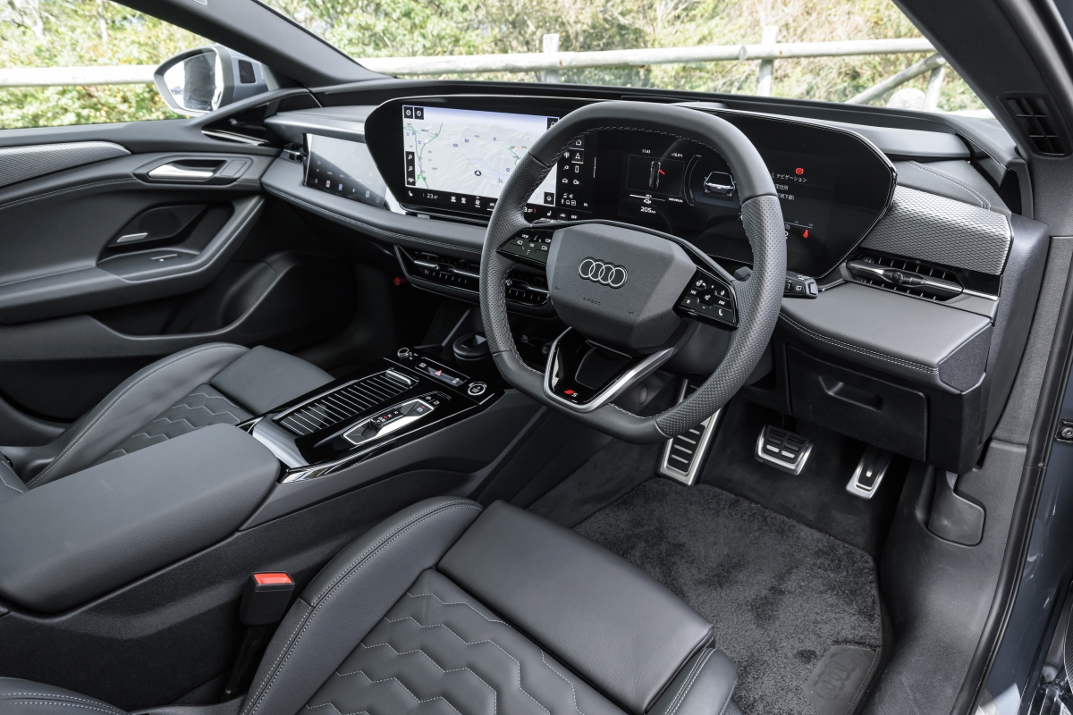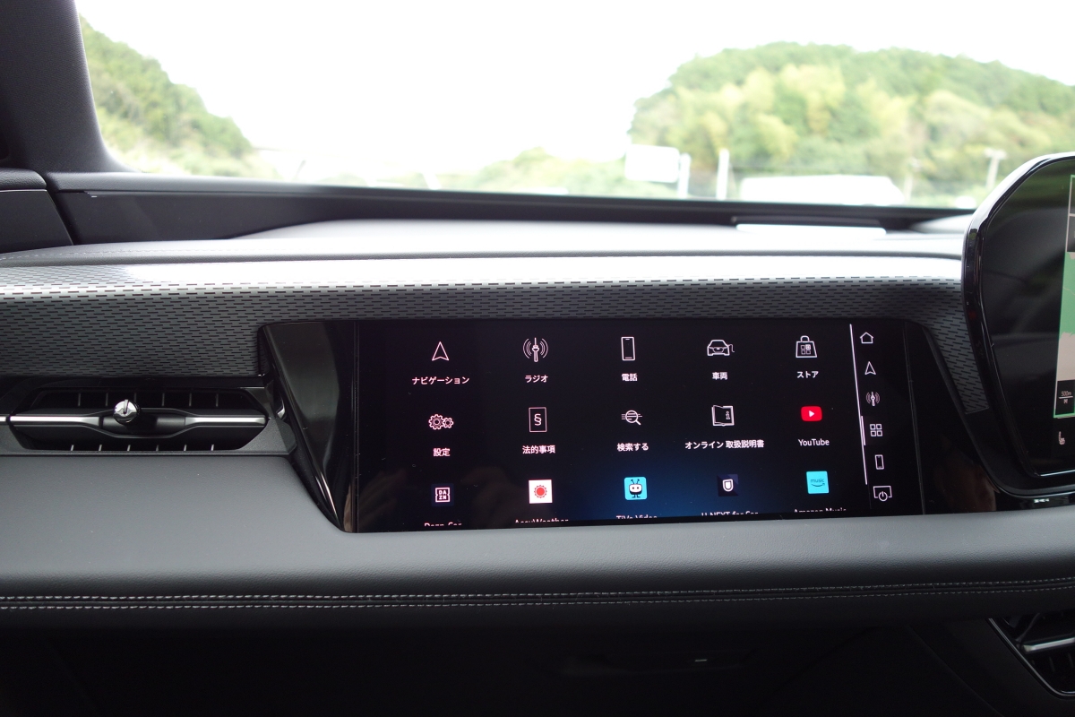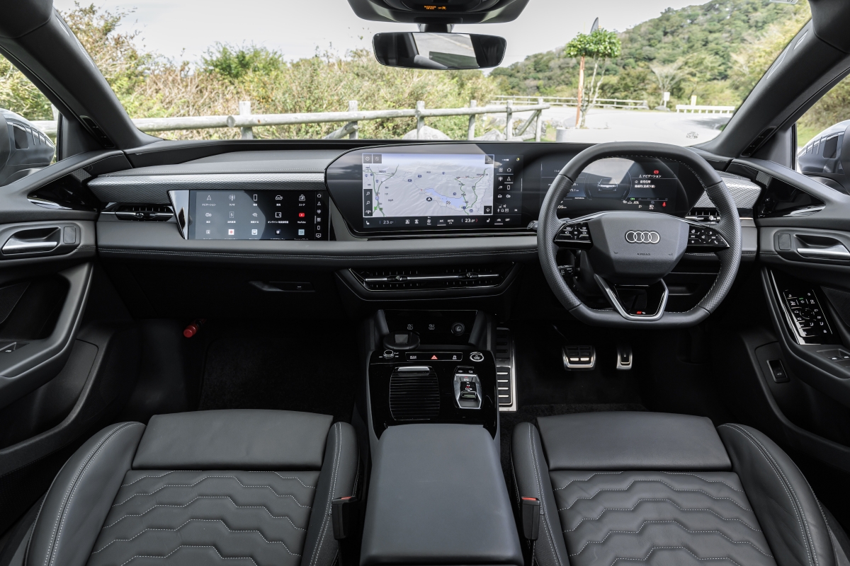 インテリアはA5、Q6でも採用されているデジタルコクピットを採用。MMI パノラマディスプレイは、曲面デザインとOLED 技術を備えた11.9 インチのAudi バーチャルコックピットと14.5 インチのMMI タッチディスプレイで構成され、オプションのテクノロジーパッケージに含まれる助手席用の10.9 インチのMMI フロントパッセンジャーディスプレイとともにデジタルステージを形成する。その助手席でも享受できる先進感、操作性、エンタテインメント性こそ、最新のアウディの真骨頂と言っていい。