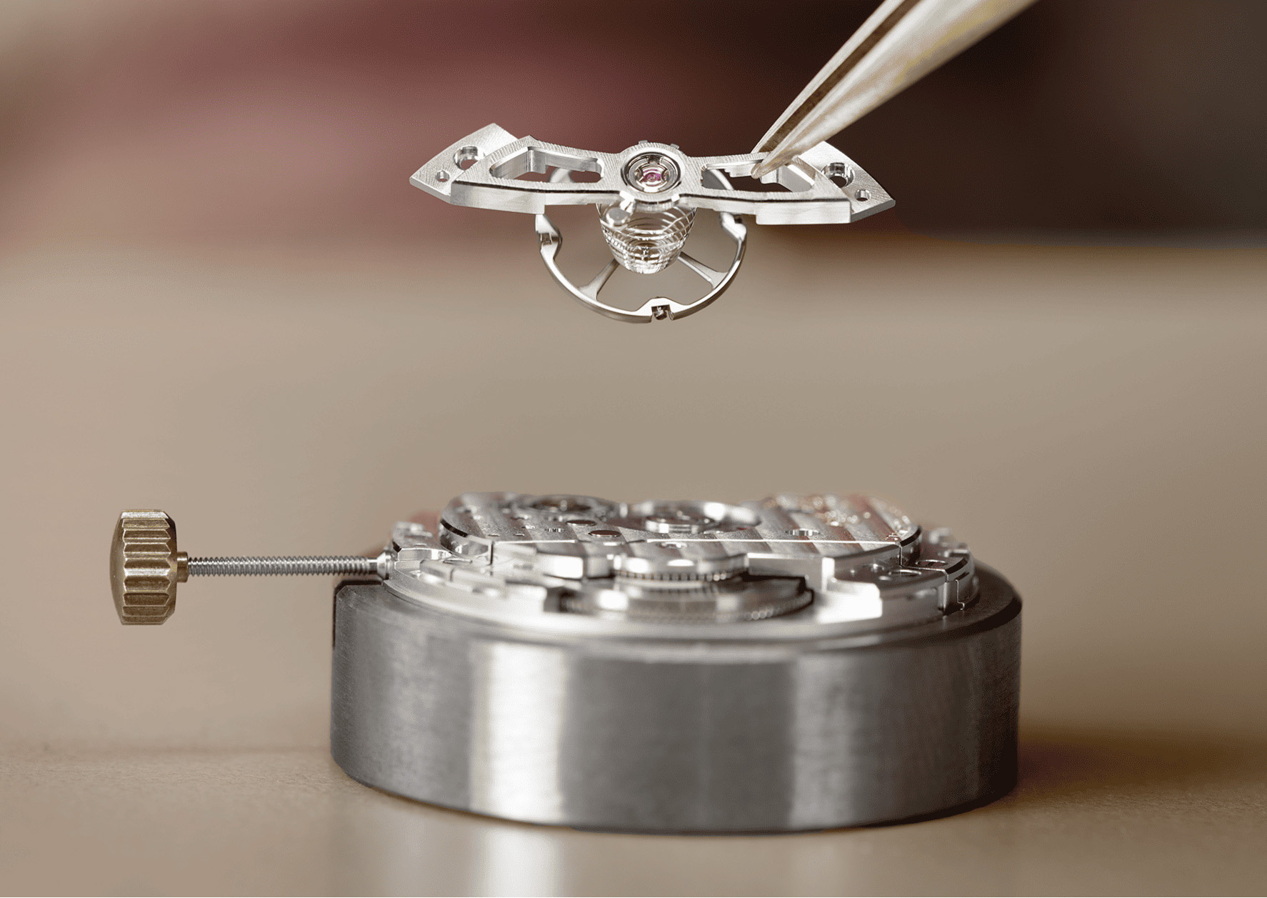 テンプ受、輪列受、香箱受からなる金属板は、機能だけでなく美しさも兼ね備えている。左右対称がこのムーブメント製造の基本理念で、これはコンスタン・ジラールが大切にしていた原則でもあった。スケルトン加工が施されたテンプ受は、2点で固定されているため、安定感が増している。また、透かし彫りデザインにより、テンプが回転し伸縮するヒゲゼンマイやシリコン製エスケープメントの動作も眺めることが可能。ジラール・ペルゴはキャリバー GP4800に施された 10種類もの仕上げを通して、改めて卓越性への揺るぎない取り組みを示した。そのクラフツマンシップは、目に見えるものばかりではなく、隠れたものもある。