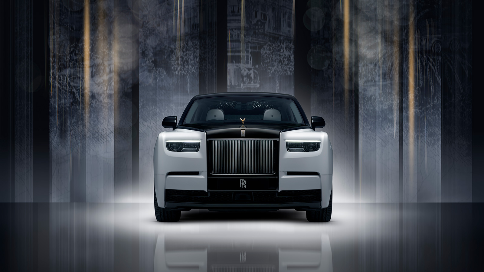 1つひとつの歴史的瞬間は、卓越した職人技によって命が吹き込まれる。これらの技法の多くは、この希少でコレクション価値の高い記念モデルのために特別に生み出されたもの。インテリアでは、クチュリエによってデザインされた生地、スケッチ風の刺繍、レーザーエッチングが施されたレザー、そして3Dマーケトリーや金箔、3Dインク・レイヤリングといった革新的な木工技術によって、ファントムの物語を驚くべき精緻さで語る。さらにエクステリアには、初代ファントムから受け継がれてきたマスコットを新たな視点で再解釈したゴールド製のスピリット・オブ・エクスタシー像が冠され、この記念すべき節目を祝している。