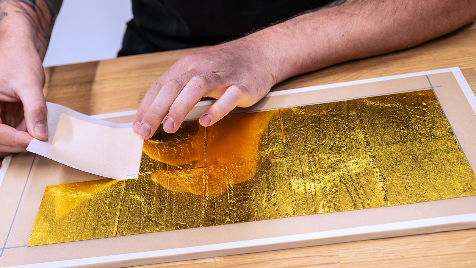 各構図は、立体的なマーケトリー(寄木細工)、レーザーエッチング、3Dインク・レイヤリング、そして金箔仕上げが組み合わされ、奥行きと質感が巧みに表現されている。地図や風景、花木などのマーケトリーフは、レーザーを用いて木材の異なる三層の深さで木材に刻まれている。これらの旅路を示す道筋は、厚さわずか0.1ミクロンの微細な24金箔の線で描かれ、光を受けて輝きを放つ。その各道は丹念に作られ、切り出され、配置されている。そしてリアのドアには、南フランス原産の植物である松、ヒノキ、シダ、ヤシなどが描かれている。さらに、リアのパッセンジャードアの一部には、ヘンリー・ロイス卿がこの地を描いた油彩画のひとつが、キャンバスから木材へと置き換えられる形で再現されている。また、ロイス卿の邸宅であった南仏のヴィラ・ミモザと、ウェスト・ウィッタリングのエルムステッドの正確な位置が、それぞれ直径2.76ミリの金箔の点で示されている。