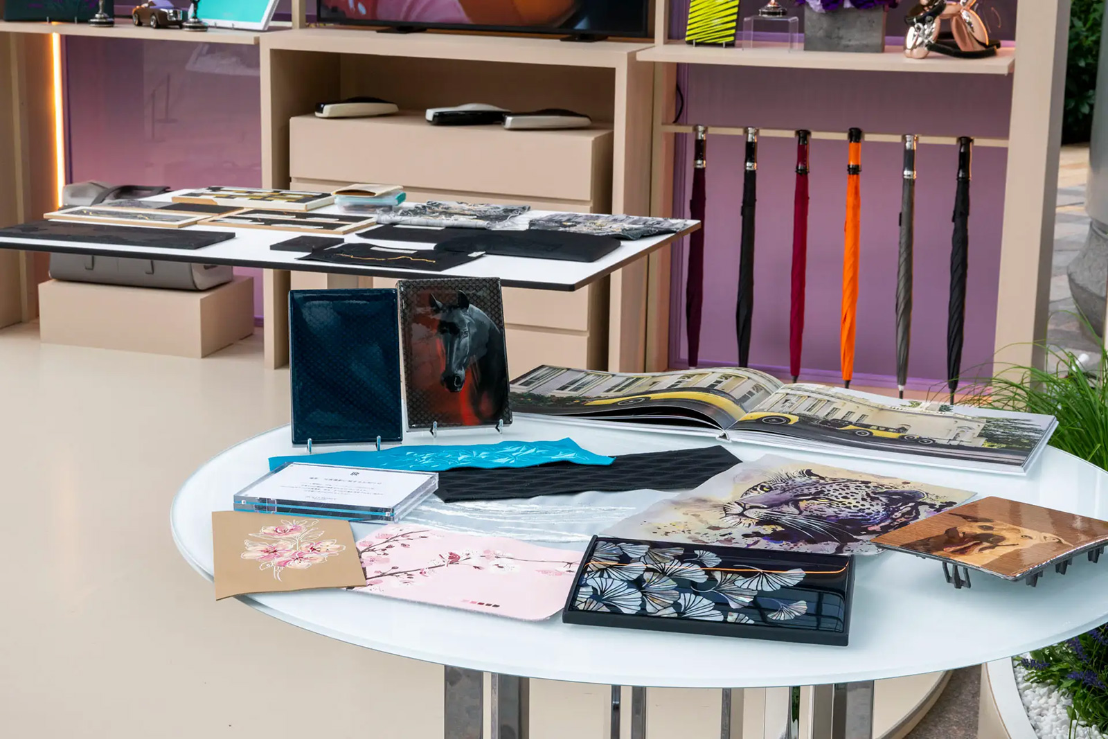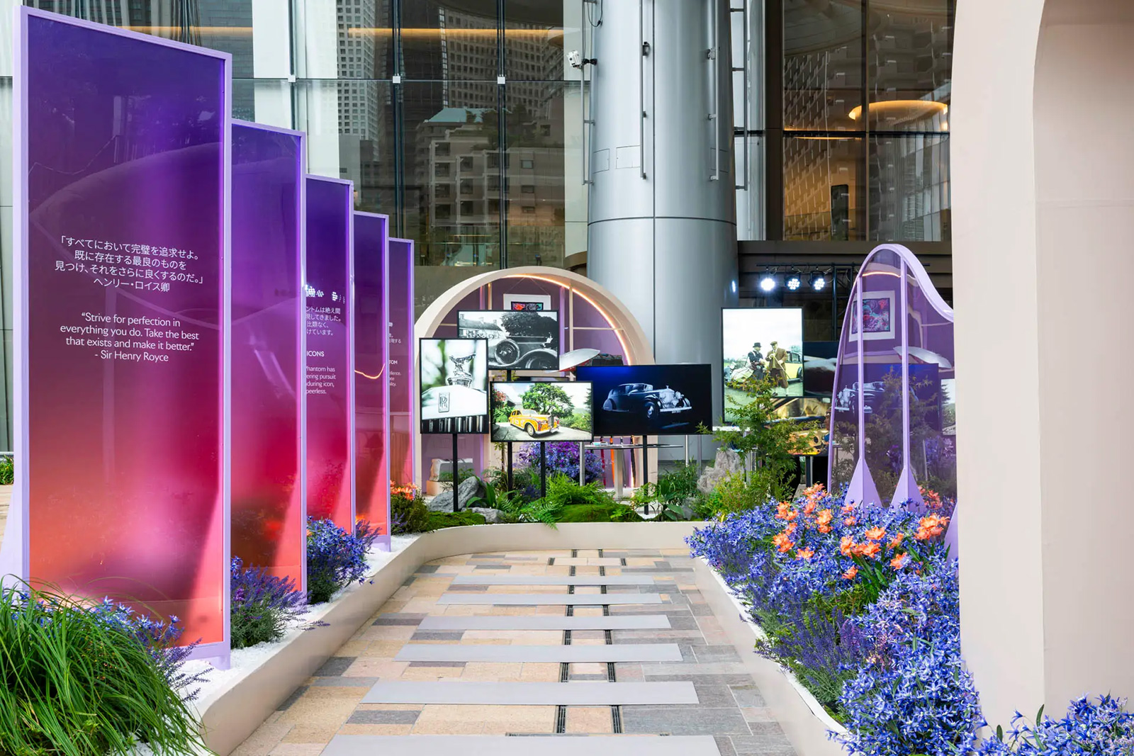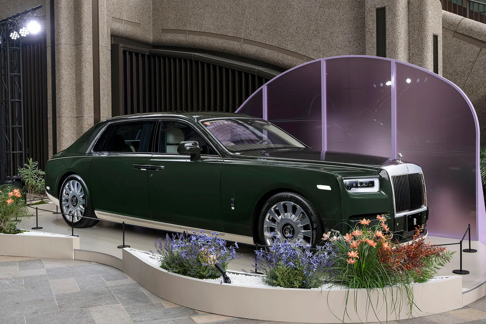 会場に一歩足を踏み入れると、様々な時代や製品を通してファントムの100年の歴史を映し出す映像がマルチスクリーンで映し出されている。会場内には、1930年代のヘリテージカー「ファントムII コンチネンタル」や、世界限定25台のプライベート・コレクション「ファントム・シンティラ」、唯一無二の「ファントム・オリベ」、そして日本初公開となる最新プライベート・コレクション「ファントム・センテナリー」の4台のファントムが展示。さらに、色鮮やかなビスポークのためのマテリアルやアクセサリー・コレクション、音楽を通じてファントムの歴史を彩ってきた様々な時代を体験できるコーナーも設けられ、訪れる者を世界最高峰のビスポーク・クラフツマンシップが織りなす、卓越した美と感性の旅へ誘う。