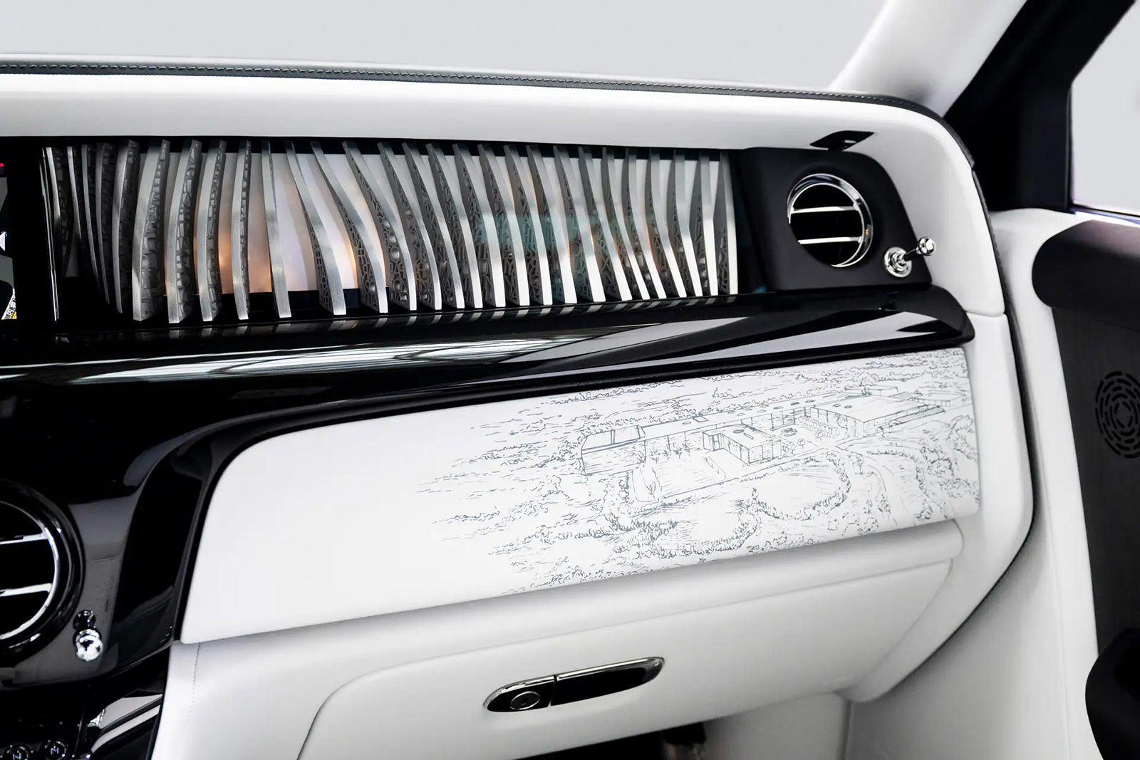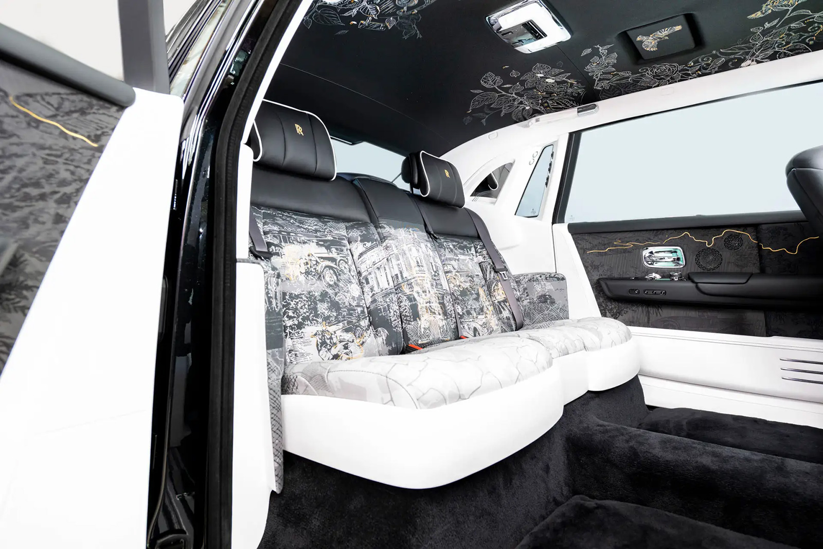 1920年代から現代に至るまで、ファントムの時代ごとの精神とアイデンティティを探求し、著名なオーナーや、ロールス・ロイスを支えた重要人物、ファントムが構想され製造された場所、そしてそれぞれの時代を特徴づけた出来事などが金属、木材、塗装、ファブリック、レザー、刺繍でひとつの見事な作品に融合されている。まるで一冊の書物のように、ファントムの100年の歴史を象徴的な要素とともに紐解き、この特別なモデルのオーナーがこれから長い年月をかけて鑑賞し、読み解いてもらえる豊かな物語を表現している。