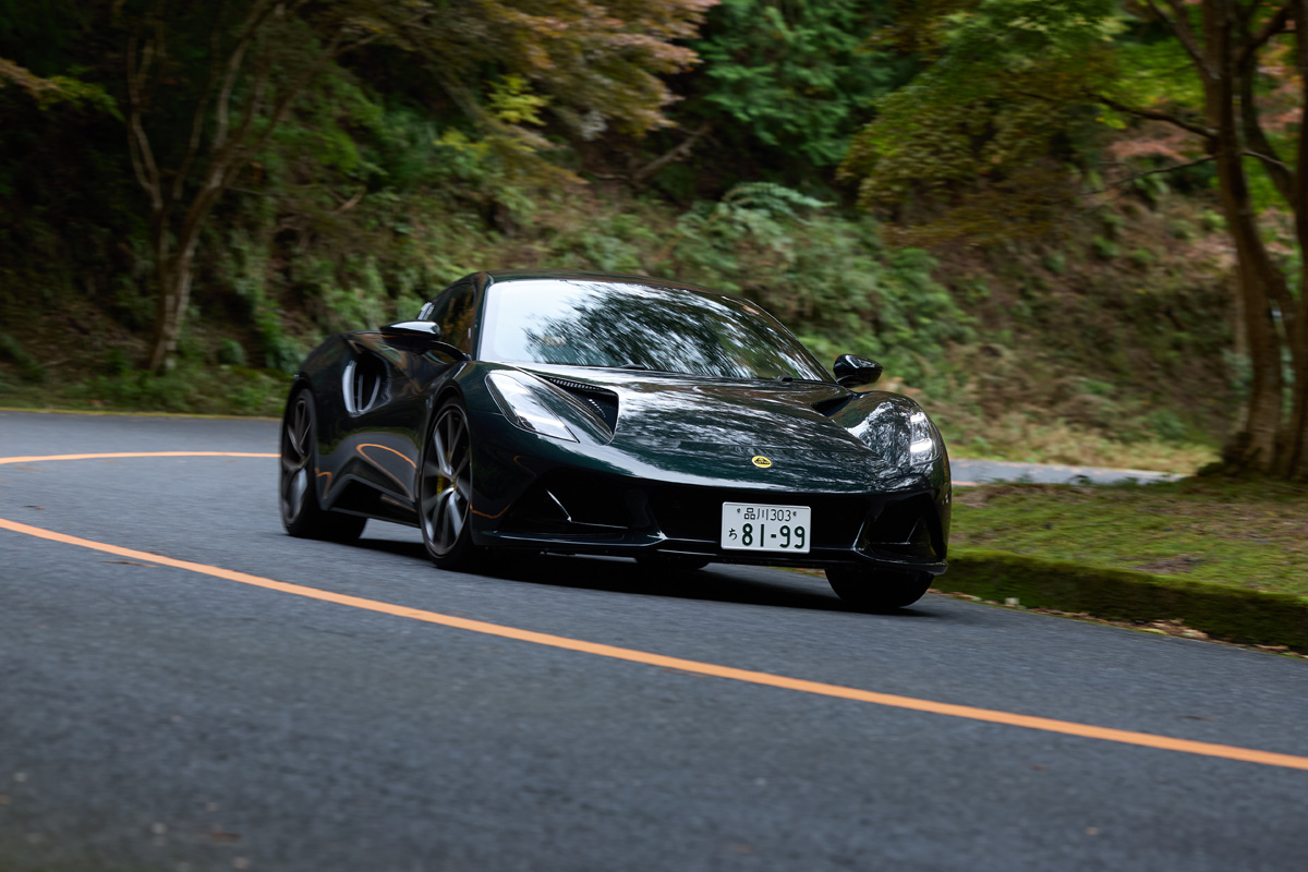 創業者コーリン・チャップマンによる〝軽さこそが性能〟という理念が掲げられてから77年。ロータスはモデルとしても、ブランドとしても軽快なハンドリングと俊敏なフットワークで数々の時代を駆け抜けてきた。今回、エミーラを街中からワインディングまで走らせてみて感じたのは、すっきりとした爽快感と、操る喜びの余韻だ。ミッドシップらしい正確無比なハンドリングと、ドライバーを試すかのような奥深さ。そのうえでツーリングにも耐えうる乗り心地と実用性を備えている点は特筆に値する。
