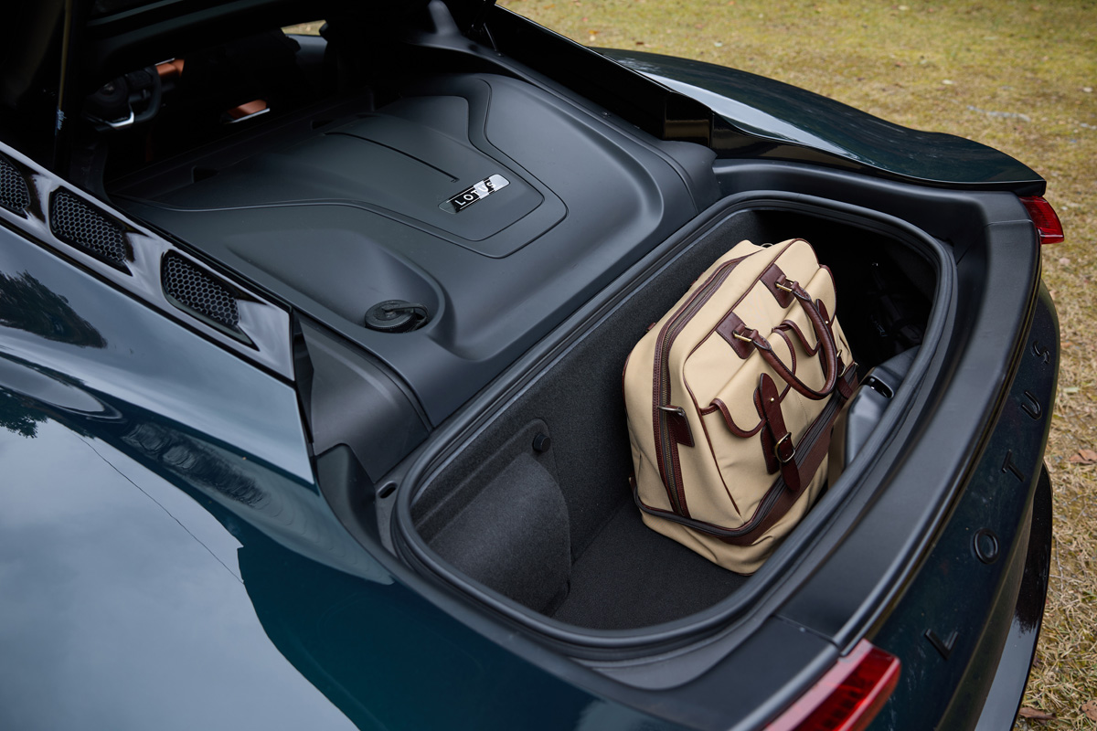 一方で、キャビンまわりの仕立てはこれまでのロータスから大きく様変わりした。上質なタンレザーを惜しみなく用いたインテリアは、往年のプリミティブさとは異なる落ち着きと温かみを備える。オートエアコンやKEF製10チャンネルサウンドシステムといった快適装備に加え、フロントシート背後やリアコンパートメントにトランクスペースを確保するなど、旅のパートナーとしての実用性も抜かりない。こうした日常と旅に寄り添う質感の高さこそ、最新ロータスが目指す新たな流儀といえるだろう。
