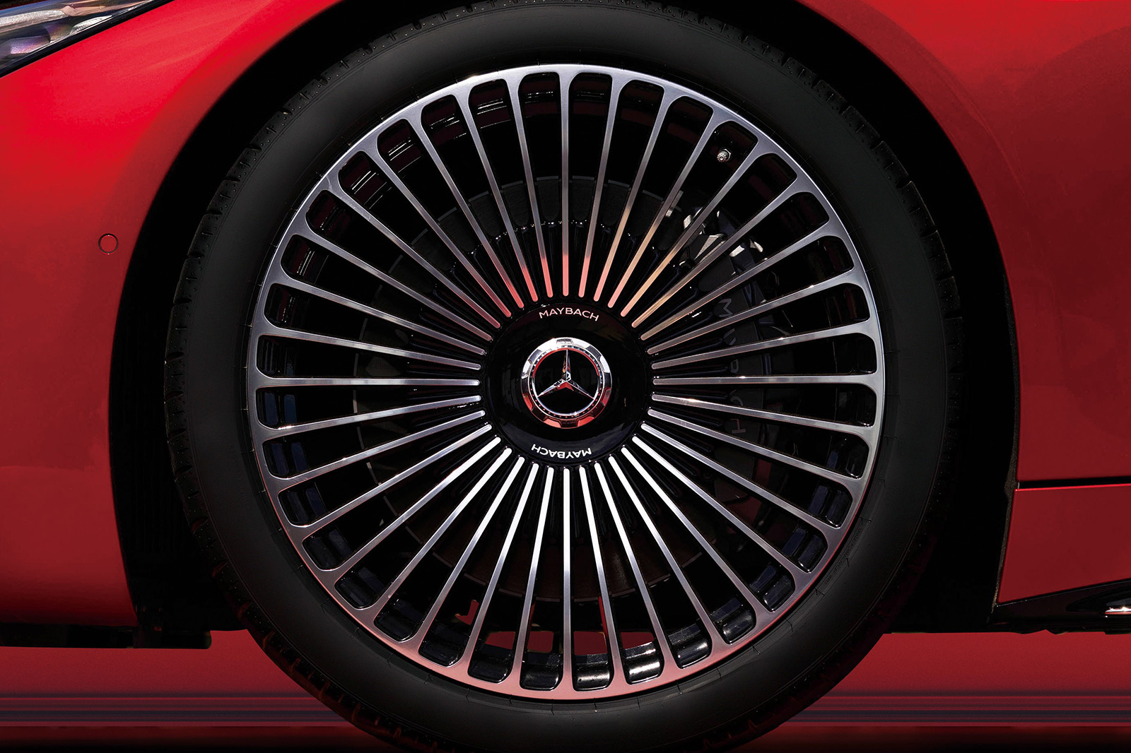 また、21インチのMAYBACH鍛造ホイールは、標準装備の5ホールホイールと、有償オプションのマルチスポークホイールの2つのデザインから選択可能となっている。さらにエクスクルーシブ性を高める有償オプションとなるMAYBACHロゴ入りボンネットも選択可能。「オブシディアンブラック(メタリック)」のボンネットに「グラファイトグレー」 のマイバッハパターンを施したこのプリントボンネットには、非常に複雑な製造工程を要し、一部の作業は職人の手作業で行われる。また、工程の各段階において複雑な技術的要件を満たす必要があり、最高水準の精度が要求される。