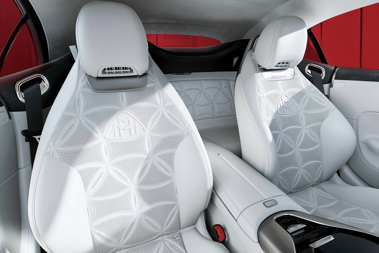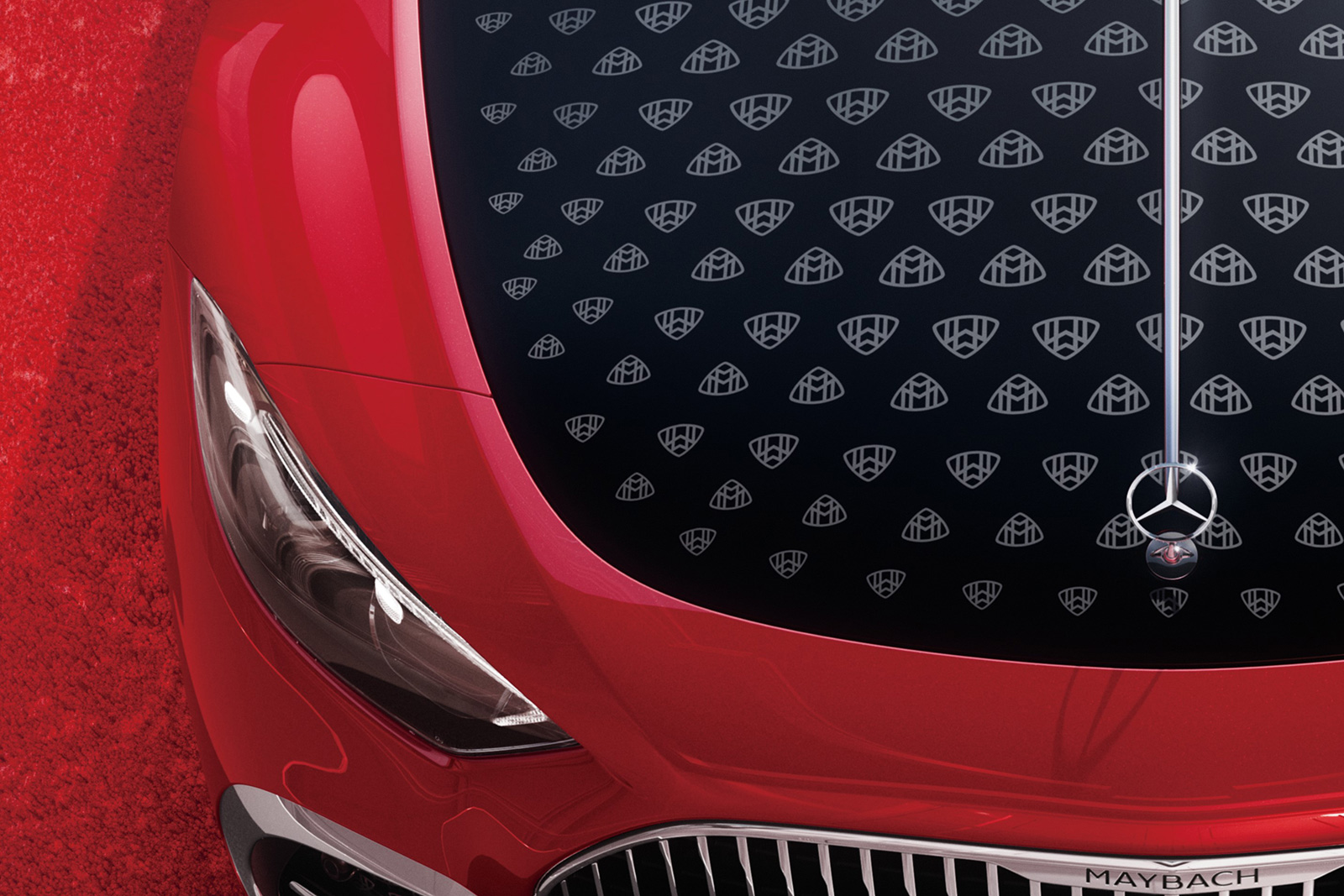 “MAYBACH”レタリングが目を惹くフロントグリルには、マイバッハとして初めてAシェイプの輪郭を採用し、クローム仕上げのピンストライプと相まって、視覚的な重心を大きく下げ、スポーツカーらしいスタイルを演出している。このフロントグリルおよび“MAYBACH”レタリングは、発光機能を持つイルミネーテッドラジエターグリルとなっており、昼夜を問わず圧倒的な存在感を放つ。
