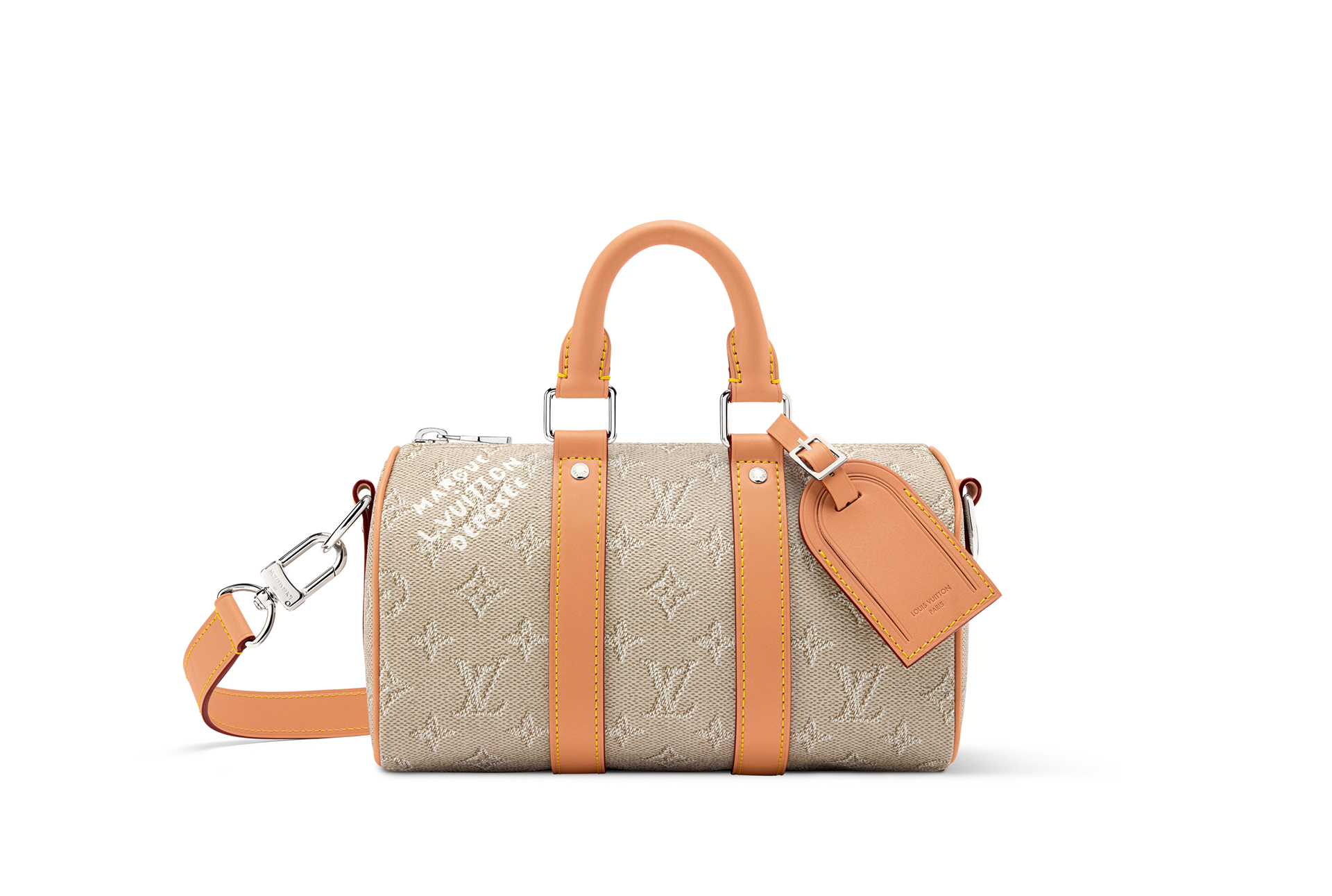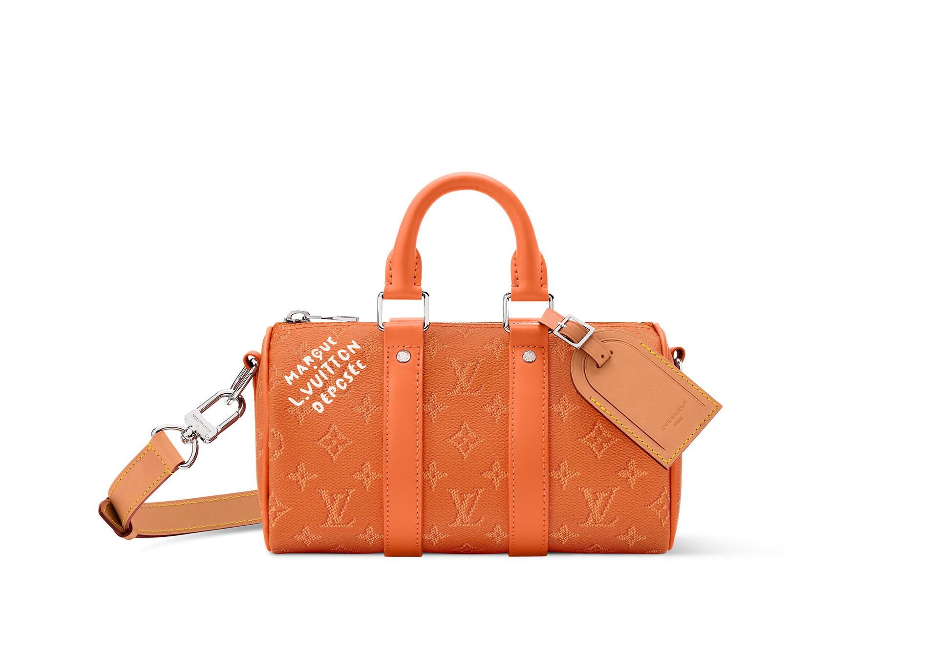 メゾンを象徴する「Marque L. Vuitton Déposée」のシグネチャーが際立つ「キーポル·バンドリエール 25」。鮮やかな色合いがあらゆる装いに華やかさを添えるデザインを採用。取外し&調節可能な「Louis Vuitton」シグネチャー入りストラップにより、肩掛けや斜め掛けバッグとしても楽しめる。内装にはカラーのコットンライニングをあしらった。