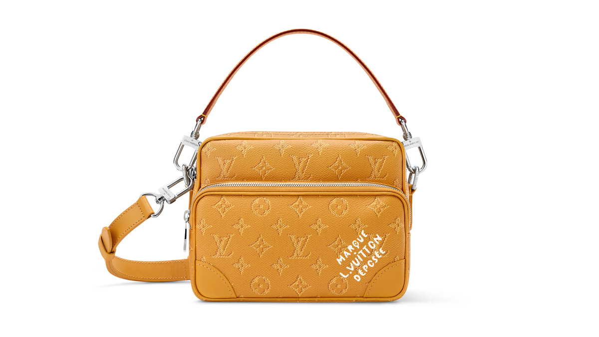 レトロな雰囲気を演出する「ナイル」。内側にフラットポケットが付属したメインコンパートメントと、ファスナー式のフロントポケットを備えたアイテム。取外し可能なレザーのトップハンドルとショルダーストラップにより、多彩な持ち方が楽しめるデザイン。フロントポケットには、ヴィンテージ感漂う「Marque L. Vuitton Déposée」シグネチャーがプリントであしらわれている。