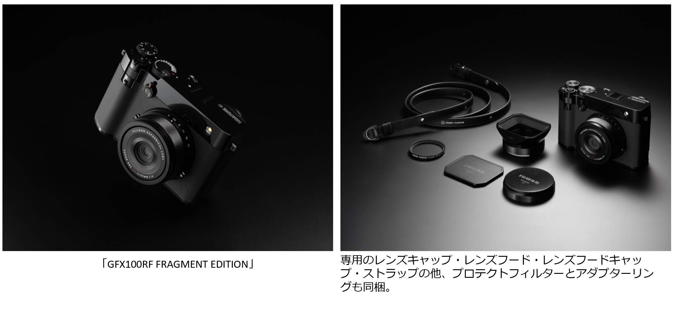 「GFX100RF」は、2025年4月の発売以降、1億2百万画素高速センサーによる異次元の高画質の撮影体験や、アルミ削り出し加工を施したカメラ軍艦部などの洗練されたデザインで好評を得ているレンズ一体型のデジタルカメラ。今回登場する「GFX100RF FRAGMENT EDITION」は、ファッションや音楽、アートなど幅広いカルチャーシーンで存在感を放つ藤原ヒロシ氏の監修の下、「GFX100RF」が本質的に備える所有欲を満たすデザインをさらに際立たせるため、軍艦部を始めとした外装部からアクセサリーに至るまで細部にこだわり抜いたデザインを施した特別モデルとなる。