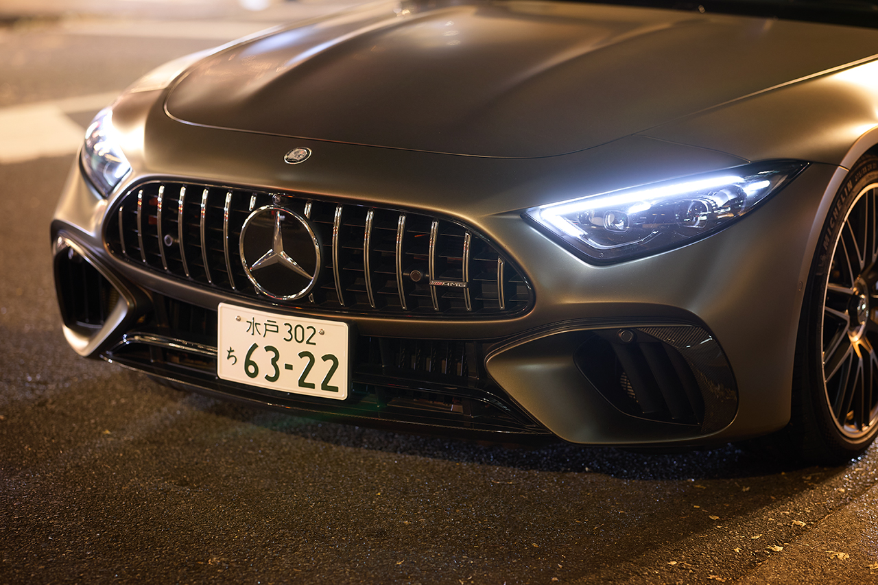 だが現代のメルセデスAMGには、世界最高峰のモータースポーツで磨かれた技術力が注ぎ込まれている。そしてその獰猛さの奥に「知性」が宿る点が大きな特徴だ。右足で踏み込むスロットルのわずかな操作に対しても、ミリ単位の変化に見合った精度でパワーが湧き、欲しい時に欲しいだけ瞬時に力が引き出せる。アクティブスタビライザーと電子制御ダンパーを組み合わせたサスペンションが車両姿勢の安定性を明確に高め、ステアリング、スロットル、ブレーキのすべてが精細につながる。その結果、思い描いた通りのフットワークとハンドリングが得られる。その精緻と言える操作感覚は格別だ。
