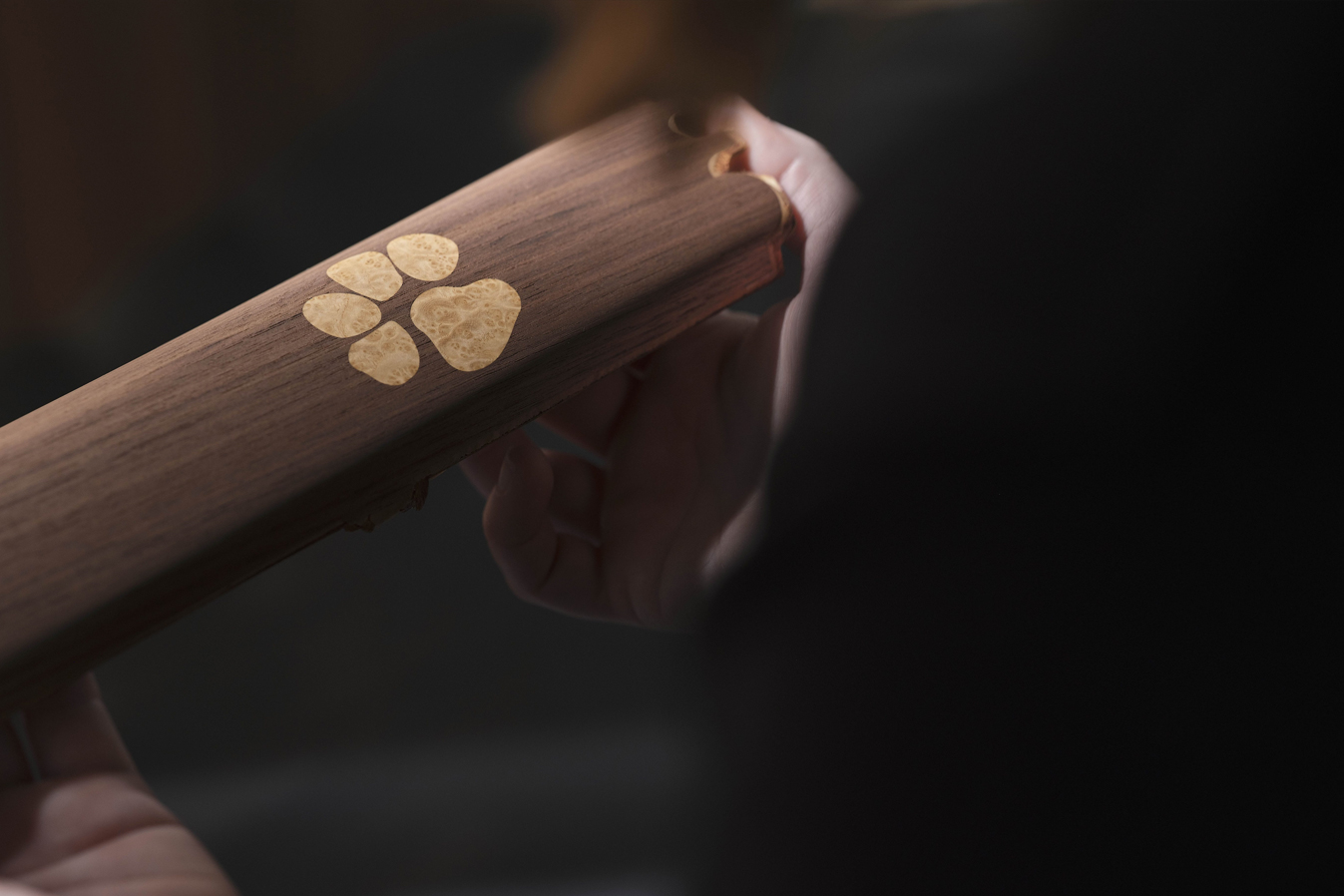 米国の長年にわたるロールス・ロイスのオーナーからの依頼で製作されたスペクター・ベイリーは、大切な家族の一員である愛犬に捧げられた唯一無二の作品。エクステリアは愛犬の柔らかな毛並みの色調から着想を得たユニークなツートーン仕上げで、コーチラインのモチーフとして手描きの肉球の跡が施されている。インテリアには、9種類の天然ベニヤ材を80枚組み合わせて製作された精巧なマーケトリーのベイリーの肖像が、後部座席のウォーターフォールを飾る。また、インテリアの配色はベイリーの柔らかな毛並みを表現している。