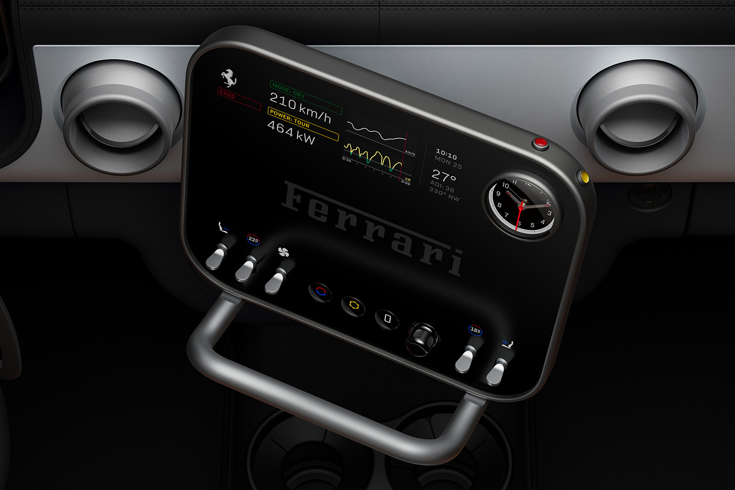 今回の発表は、フェラーリとLoveFromによってサンフランシスコで行われた。LoveFromは、ジョニー・アイブ氏が同じくデザイナーのマーク・ニューソン氏とともに創設したクリエイティブ集団で、この新モデルのデザインのあらゆる側面について、5年にわたってフェラーリとコラボレーションしてきた。テクノロジーとデザインの世界的中心地であるサンフランシスコでは、長年、世界で最も革新的なユーザー・エクスペリエンスやインターフェース・デザインが生まれてきた。