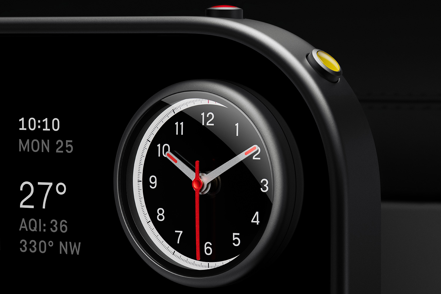 そして素材は、耐久性と統一感を考慮して選ばれた。デザイナーが多用したのは、精密機械加工に適しているアルミニウムで、開発されたコンポーネントによって、素材の品質と美しさが際立っている。使われたのは100%再生由来のアルミニウム合金で、3軸あるいは5軸の最新CNC加工技術を用いて、むくのビレットから精密に削り出してから、最先端のアルマイト処理を施している。この処理によって、六角形の極小構造を持つ極めて薄い膜が表面に作られ、抜群の耐久性と硬度、洗練された繊細な手触りが生まれる。その結果、時間がたっても鮮やかさが衰えない深い色合いで仕上がる。ガラスは、耐久性と耐傷性が高く、視認性に優れたコーニングフュージョン5ガラスを使用し、精密に成形されている。
