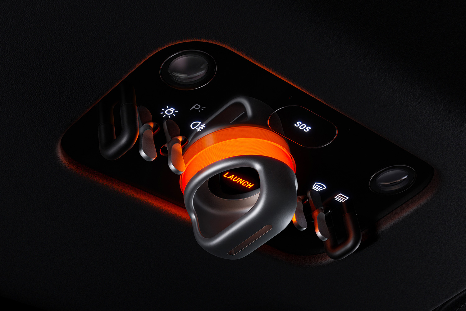 デジタルとアナログの要素が調和した自己完結型のユニットで、ステアリング・コラムに取り付けられており、ステアリングの角度に合わせて動いて、シームレスな意思疎通を可能にする。デザイナーが細部にも徹底的な注意を払った結果、ビナクルでは、サムソン・ディスプレイのエンジニアの協力を得る必要があった。こうして、世界で初めて3箇所に大きなカットアウトを設けた超軽量・超薄型の有機ELパネルが誕生した。そこに、上部パネル裏の第2のディスプレイの情報を戦略的に表示して、目を捕らえる興味深い視覚的奥行きを作り出している。それぞれの開口部は、透明なガラスレンズで保護されており、立体感がさらに強調されている。また、開口部を取り囲むアルマイト処理されたアルミニウム製リングによって絶妙なバランスとなり、それがビナクル全体を包む構造フレームのスタイルと調和している。