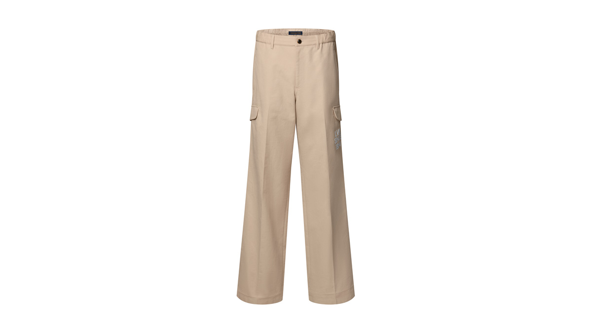 毎日の装いを完成させる、タイムレスなワードローブの定番カーゴパンツ。クラシカルなベージュで仕上げた質感のある織りが特徴のオーガニックコットンで仕立てられ、伸縮性のある背面ウエストが快適な着心地を実現した。2026春夏コレクションに登場した、左脚に施されたホワイトの LV アルファベットのシグネチャー刺繍が、存在感のあるアクセントを添えている。