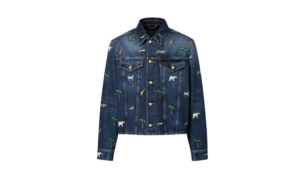 ルイ·ヴィトンが映画『The Darjeeling Limited(ダージリン急行)』のために制作したモチーフが美しい、2026春夏ファッションショーのグラフィカルなデニムシャツ。動物やヤシの木の鮮やかな刺繍がノスタルジックな旅へのオマージュを捧げる。今シーズンならではの「L.V.M.」シグネチャーを背面のパッチポケットにあしらい、パール風のボタンでトラッカーから着想を得たシルエットにダンディなひねりを加えた。揃いのシャツと合わせればトータルルックが完成する。