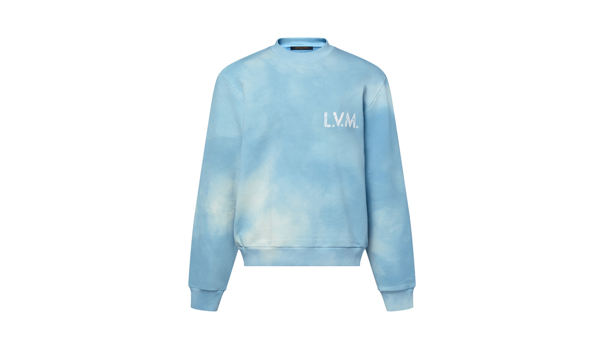オーガニックコットンを使用し、ウォッシュド加工を施した柔らかくヴィンテージ感のある風合いが魅力の淡いブルーのスウェットシャツ。2026春夏ファッションショーのテーマであるインドから着想を得て、1点1点異なる表情をもたらすタイダイ(絞り染め)風のカラーで仕上げた。手書きのようなホワイトのシグネチャーの刺繍が、胸元と背面にグラフィカルなアクセントをプラス。