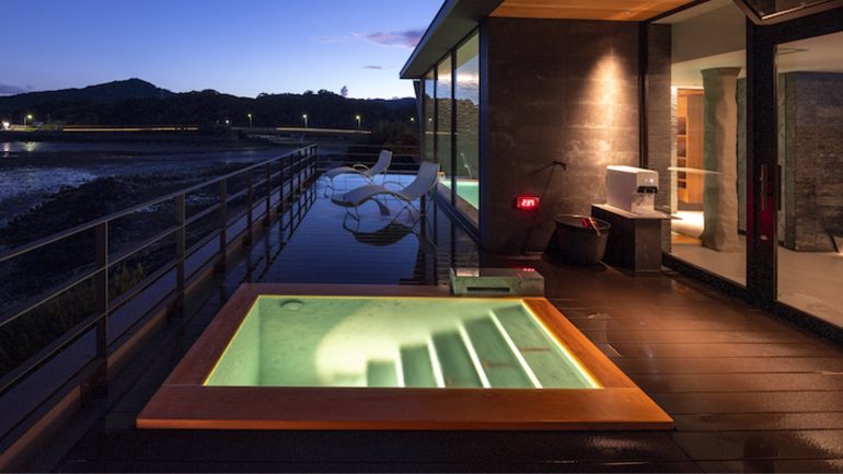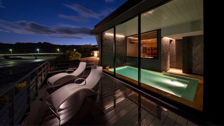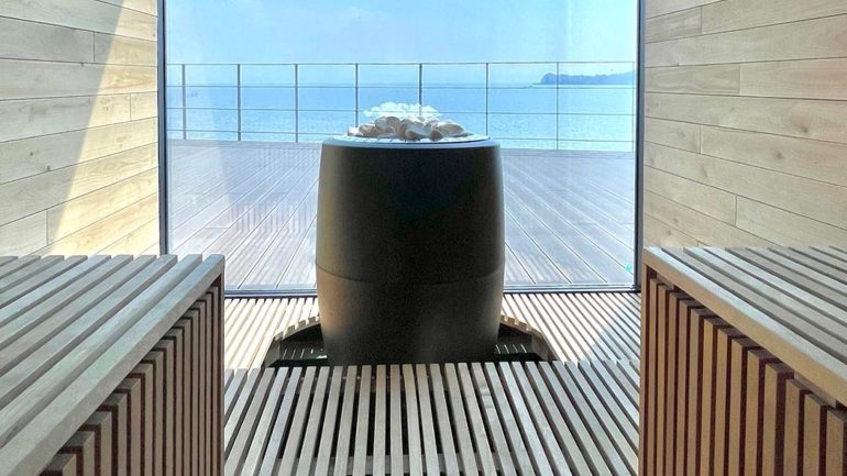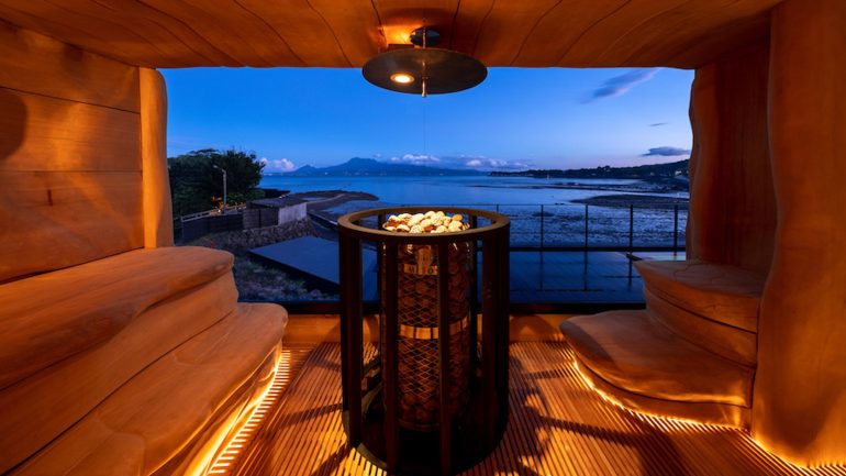 SAUNAは樹齢350~400年のサウナに適した木材であるスプルースの無垢材を削り出して作った空間だ。温泉やサウナ、立ったまま入れるこだわりの水風呂でリフレッシュ。有明海の潮の満ち引きを眺め月の引力を感じながら寛ぎたい。すべて職人の手による「木」が本来持つエネルギーにてととのうGRAVITY SAUNAと、日本初導入の身体的負担が少ないサウナ「AINO」採用のGRID SAUNAの2タイプが用意されている。