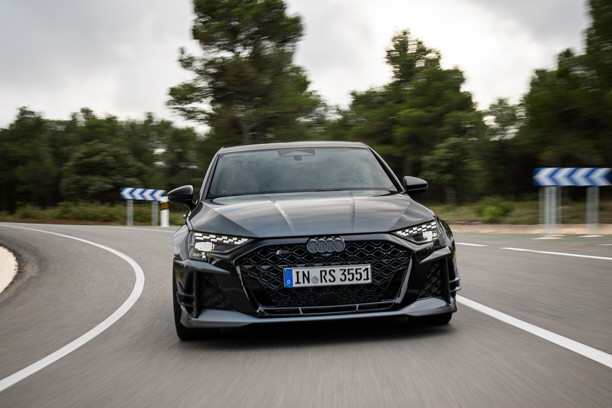 1983年、Audi Sport quattroは、2.1リットルの排気量で225kW(306PS)と350Nmを発揮していた。そしてAudi RS 3に搭載される直列5気筒エンジンは、2.5リットルの排気量を備え、294kW(400PS)と500Nmを誇る。このセグメントで唯一無二のエンジンによって実現するこの性能値は、RS 3 competition limitedに並外れたパフォーマンスをもたらす。同モデルは、0から100km/hまで3.8秒で加速し、最高速度は290km/hに達する。走行中は、5気筒ターボエンジンの紛れもないサウンドがさらなる高揚感を呼び起こす。このサウンドは1-2-4-5-3という点火順序からうまれており、エンジンのシリンダーでは隣り合う気筒と離れた気筒が交互のパターンで点火することを意味する。