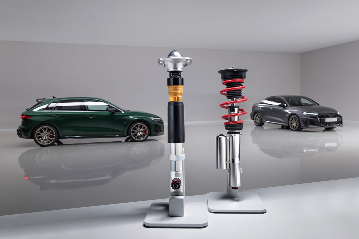 今回のRS 3は、新しいリヤスタビライザーを含むコイルオーバーサスペンションを初めて採用している。トルクスプリッターと標準装備のセラミックブレーキとの組み合わせにより、この限定モデルは際立ってスポーティなハンドリングを可能にしている。このコイルオーバーサスペンションは、RS 3 competition limitedのために特別に開発・チューニングされた。ツインチューブショックアブソーバーの構造に使用される素材は、フロントにはステンレススチール、リヤにはアルミニウムが採用されている。剛性を考慮して選定され、内部の容量を増加したことで油圧作動油の冷却性能も向上させている。