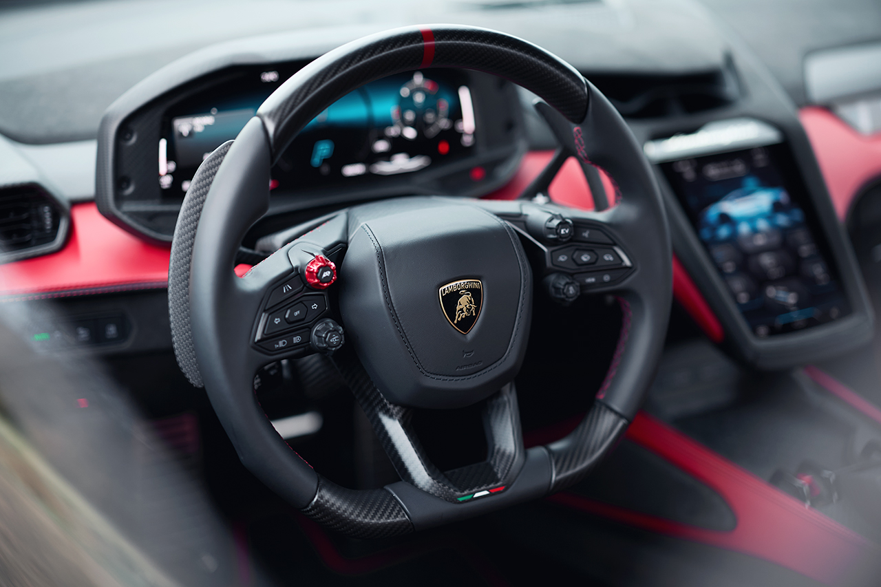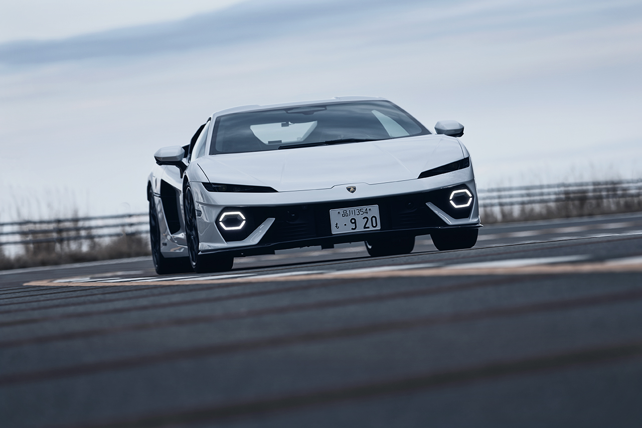 ステアリングを握ると、その性格はすぐに理解できる。静かにシステムが立ち上がるのは「レヴエルト」でも経験済みであり、その違和感はもはや新世代ランボルギーニの楽しみでもある。そのままわずかにアクセルを踏み足すと前輪が路面を掴みにいく感触とともに、車体は一気に前へと引き出される。その立ち上がりの鋭さに、思わず身体が反応してしまう。